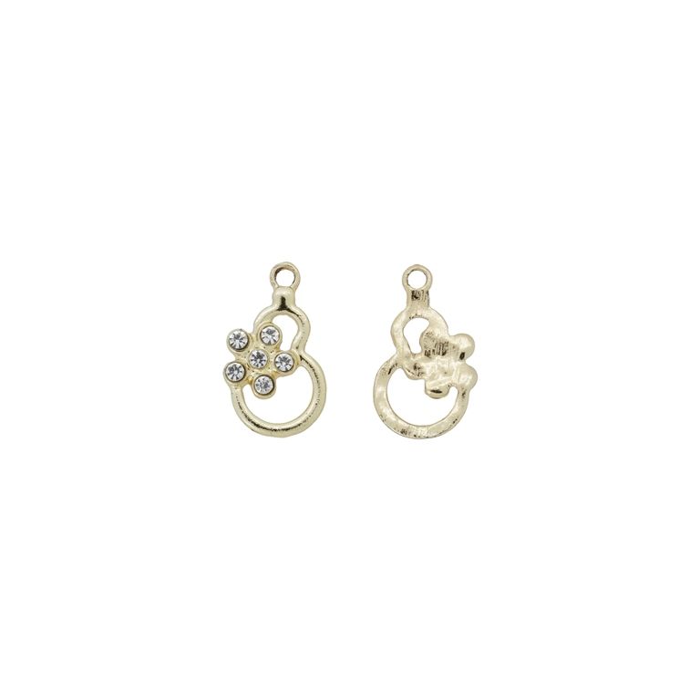 МЕТАЛНИ МЪНИСТА С КРИСТАЛИ - ВИСУЛКА - ЦВЕТЕ 02 - 12х21х2мм ЗЛАТИСТО И БЯЛО - ПАКЕТ 30 бр. Отвор-1.8мм