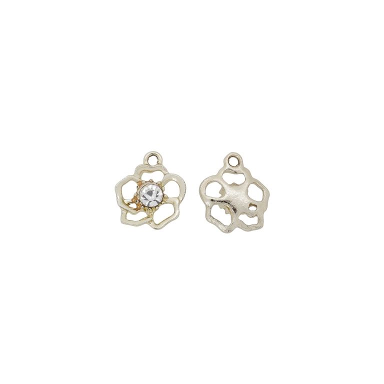 МЕТАЛНИ МЪНИСТА С КРИСТАЛИ - ВИСУЛКА - ЦВЕТЕ 03 - 15х17х4мм ЗЛАТИСТО СВ. И БЯЛО - ПАКЕТ 30 бр. Отвор-1.5мм