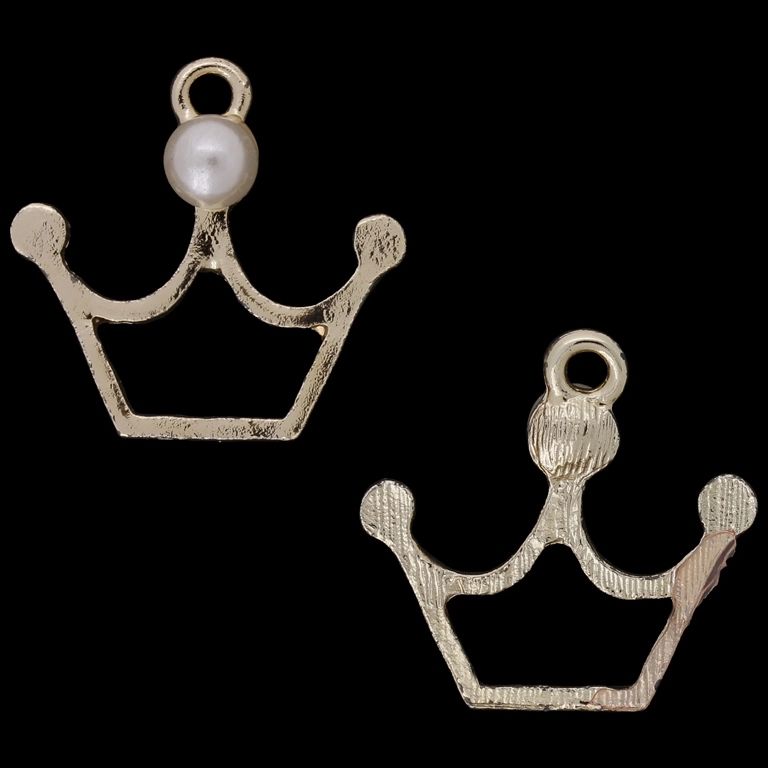 МЕТАЛНИ МЪНИСТА С ПЕРЛИ - ВИСУЛКА - КОРОНА 01 - 21х20х6мм ЗЛАТИСТО С БЯЛО - ПАКЕТ 40 бр. Отвор-1.8мм