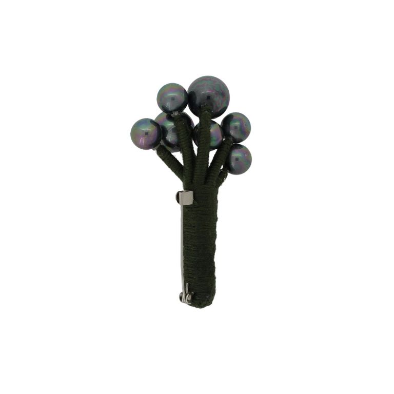 БИЖУТЕРИЯ - БРОШКА HANDMADE - МЕТАЛ И ПЕРЛИ - ДЪРВО В244 - 4.0х7.7см НИКЕЛ-ЗЕЛЕНО Т.- СИВО (ДЪГА) - ПАКЕТ 6 бр.