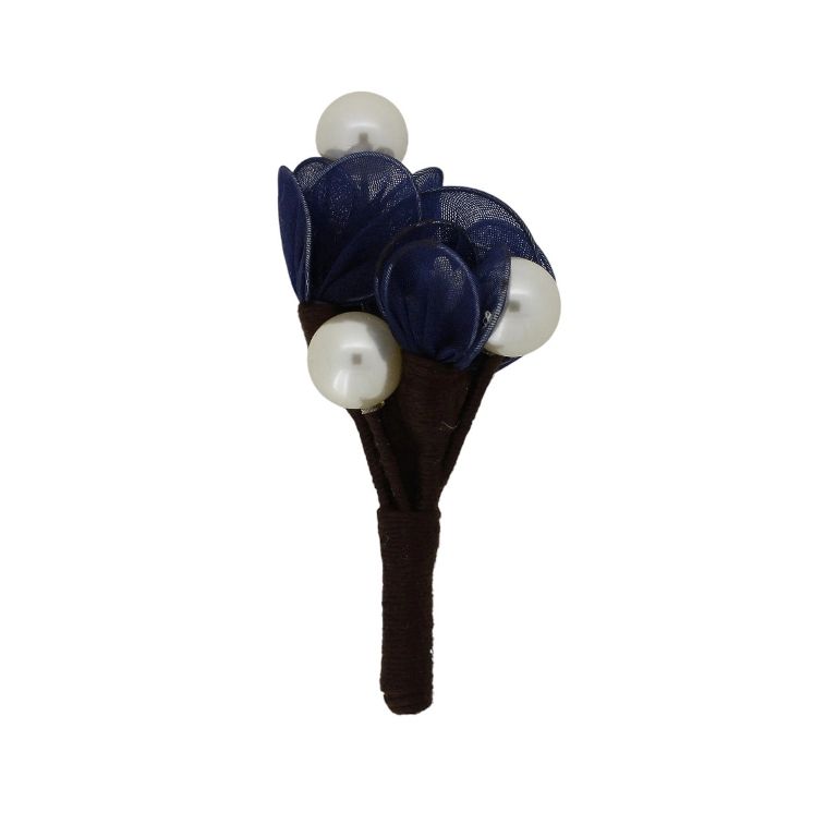 БИЖУТЕРИЯ - БРОШКА HANDMADE - МЕТАЛ И ПЕРЛИ - ДЪРВО В245 - 5.2х8.7см НИКЕЛ-СИНЬО Т.-БЯЛО - ПАКЕТ 6 бр.
