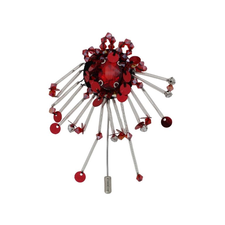 БИЖУТЕРИЯ - БРОШКА HANDMADE - МЕТАЛ И КРИСТАЛИ - АСИМЕТРИЯ В248 - 6.5х8.2см НИКЕЛ-ЧЕРВЕНО-ЧЕРНО - ПАКЕТ 6 бр.