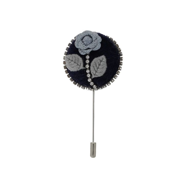 БИЖУТЕРИЯ - БРОШКА HANDMADE - МЕТАЛ И КРИСТАЛИ - РОЗА В249 - 4.0х8.7см НИКЕЛ-СИНЬО Т.-СИНЬО СВ. - ПАКЕТ 6 бр.