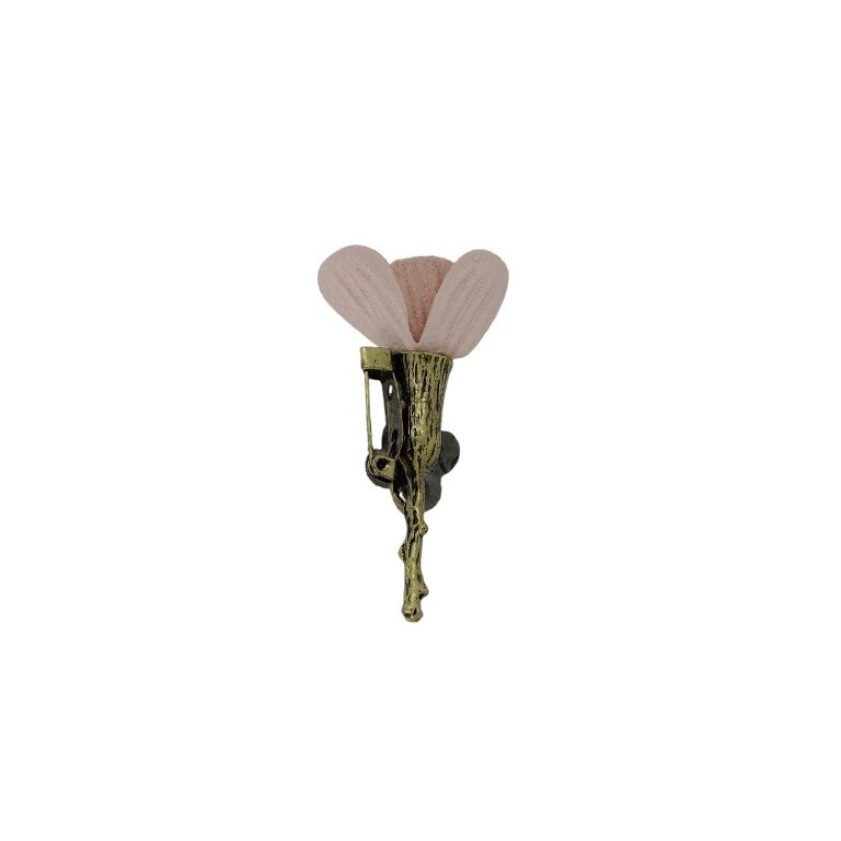 БИЖУТЕРИЯ - БРОШКА HANDMADE - МЕТАЛ И ПЕРЛИ - ЦВЕТЕ В287 - 2.4х5.6см ЗЛАТИСТО-СИВО-ПЕПЕЛ ОТ РОЗИ - ПАКЕТ 6 бр.