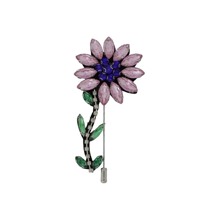 БИЖУТЕРИЯ - БРОШКА HANDMADE - МЕТАЛ И КРИСТАЛИ - ЦВЕТЕ B240 - 4.3х9.2см НИКЕЛ И МИКС - 1 бр.
