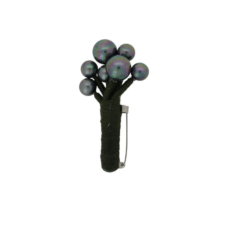 БИЖУТЕРИЯ - БРОШКА HANDMADE - МЕТАЛ И ПЕРЛИ - ДЪРВО В244 - 4.0х7.7см НИКЕЛ-ЗЕЛЕНО Т.- СИВО (ДЪГА) - 1 бр.