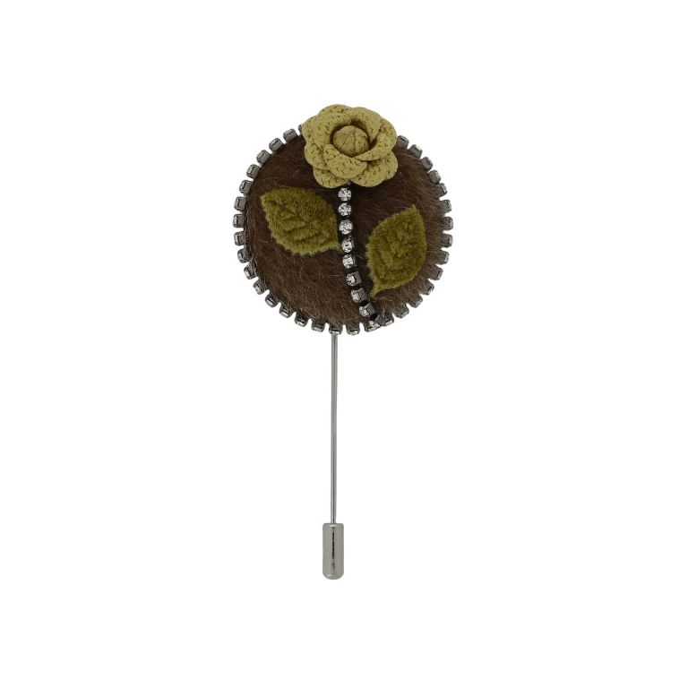 БИЖУТЕРИЯ - БРОШКА HANDMADE - МЕТАЛ И КРИСТАЛИ - РОЗА В249 - 4.0х8.7см НИКЕЛ-КАФЯВО-ЖЪЛТО - 1 бр.