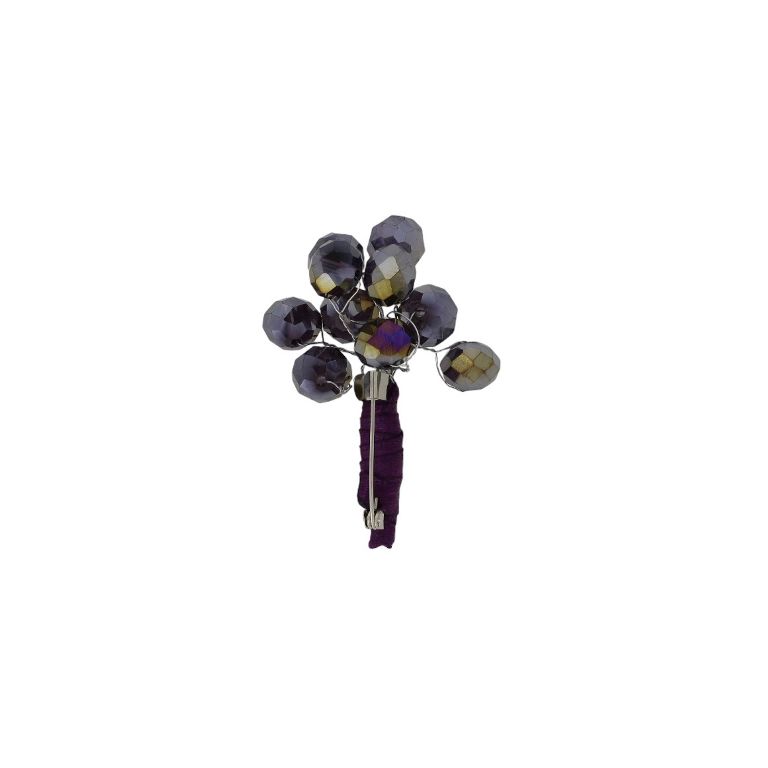 БИЖУТЕРИЯ - БРОШКА HANDMADE - МЕТАЛ И СТЪКЛО - ДЪРВО В250 - 3.7х5.0см НИКЕЛ-ЛИЛАВО-ЛИЛАВО (АВ) - 1 бр.