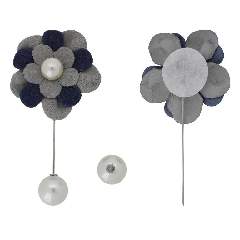 БИЖУТЕРИЯ - БРОШКА HANDMADE - МЕТАЛ И ПЕРЛИ - ИГЛА ЦВЕТЕ В268 - 4.7х9.4см НИКЕЛ-СИНЬО Т.-СИВО - 1 бр.