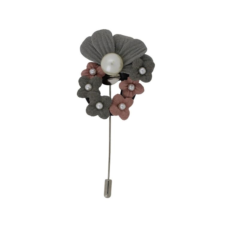 БИЖУТЕРИЯ - БРОШКА HANDMADE - МЕТАЛ И ПЕРЛИ - ИГЛА ЦВЕТЯ В272 - 3.9х9.0см НИКЕЛ-ПУДРА Т.-ЕКРЮ - 1 бр.