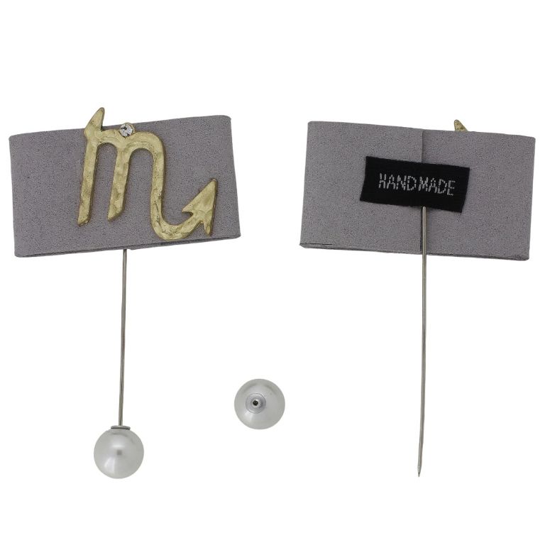БИЖУТЕРИЯ - БРОШКА HANDMADE - МЕТАЛ И ПЕРЛИ - ИГЛА СКОРПИОН В280 - 5.6х9.3см НИКЕЛ-ЗЛАТИСТО-СИВО - 1 бр.