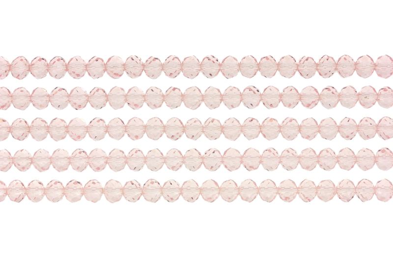 СТЪКЛЕНИ МЪНИСТА - КРИСТАЛИ - 6х5мм - ПРОЗРАЧНИ - РОЗОВО СВ. 030В - (88 бр.) Отвор-1.2мм