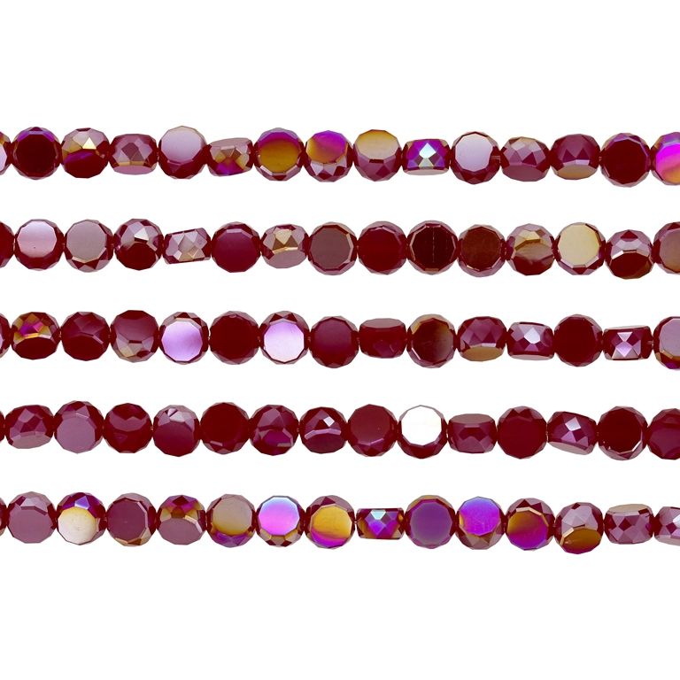 СТЪКЛЕНИ МЪНИСТА - КРИСТАЛИ ДИСК ФАСЕ - 6х3.5мм - АВ ПЛЪТНИ - ЧЕРВЕНО Т. 67АВ - ПАКЕТ (5х96 бр.) Отвор-1.5мм