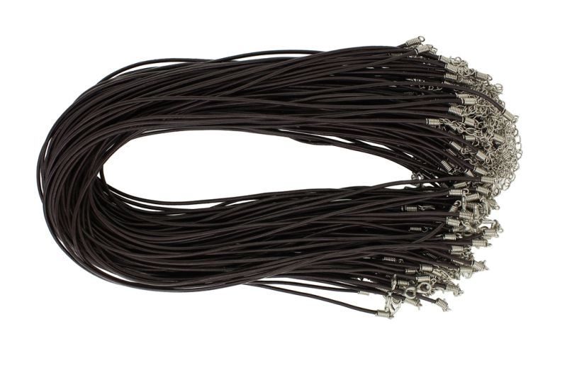 ВРЪЗКА СЪС ЗАКОПЧАЛКА - ЕСТЕСТВЕНА КОЖА 2.0мм - КОЛИЕ - 45+5см КАФЯВО Т. - 5 бр.