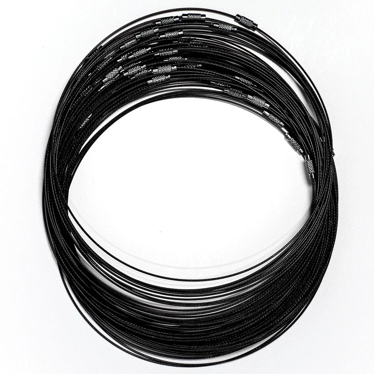 ВРЪЗКА СЪС ЗАКОПЧАЛКА - СТОМАНЕНА КОРДА 1мм - КОЛИЕ - 145мм ЧЕРНО - 5 бр.