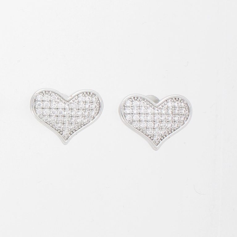 БИЖУТЕРИЯ - ОБЕЦИ - ВИНТ - МЕСИНГ И ЦИРКОН - СЪРЦЕ Е910 - НИКЕЛ И БЯЛО - ПАКЕТ 6 чифта
