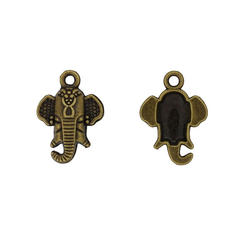 МЕТАЛНИ МЪНИСТА - ВИСУЛКА - СЛОН 18 - 16х22х4мм СТАРО ЗЛАТО - ПАКЕТ 50 бр. Отвор-2.2мм