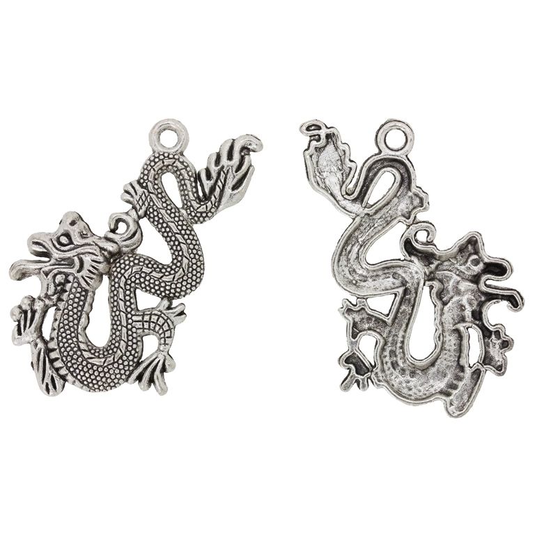 МЕТАЛНИ МЪНИСТА - ВИСУЛКА - ДРАКОН 03 - 32х53х3мм НИКЕЛ - 1 бр. Отвор-3.0мм