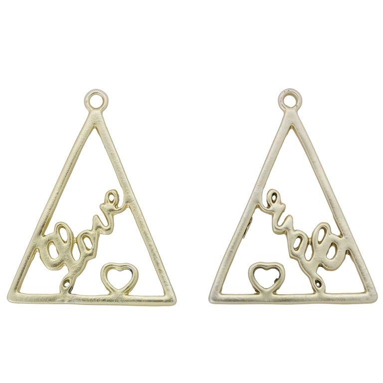 МЕТАЛНИ МЪНИСТА - ВИСУЛКА - ТРИЪГЪЛНИК 03 LOVE - 27х34х1.4мм ЗЛАТИСТО - 3 бр. Отвор-1.8мм