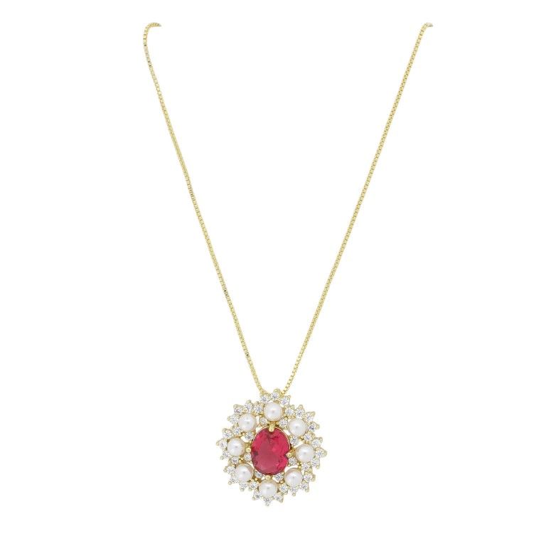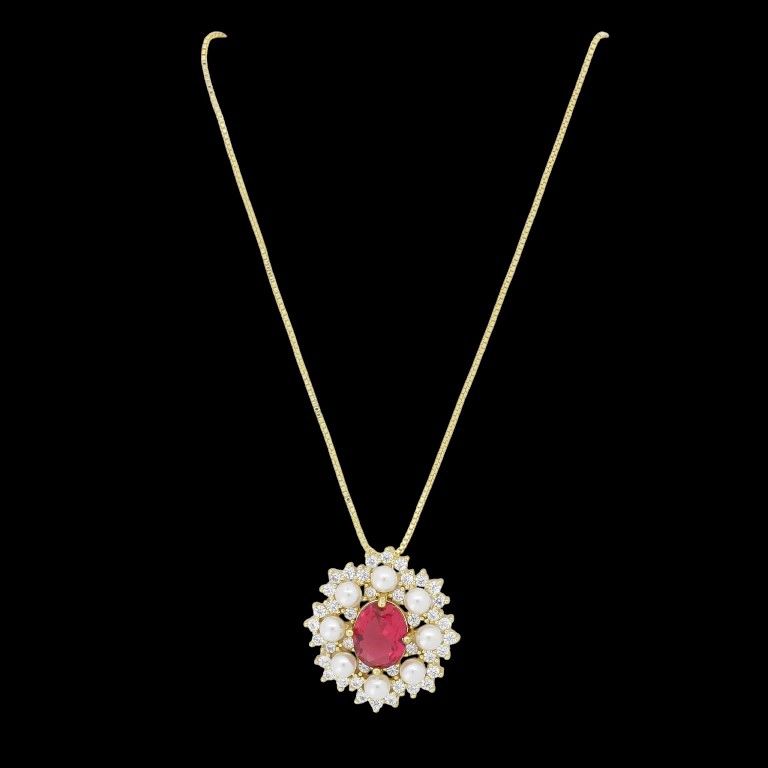 БИЖУТЕРИЯ - КОЛИЕ - МЕСИНГ И ЦИРКОН - ЦВЕТЕ К202 - 2.3х2.5см ЗЛАТИСТО-БЯЛО-ЦИКЛАМА - 1 бр.