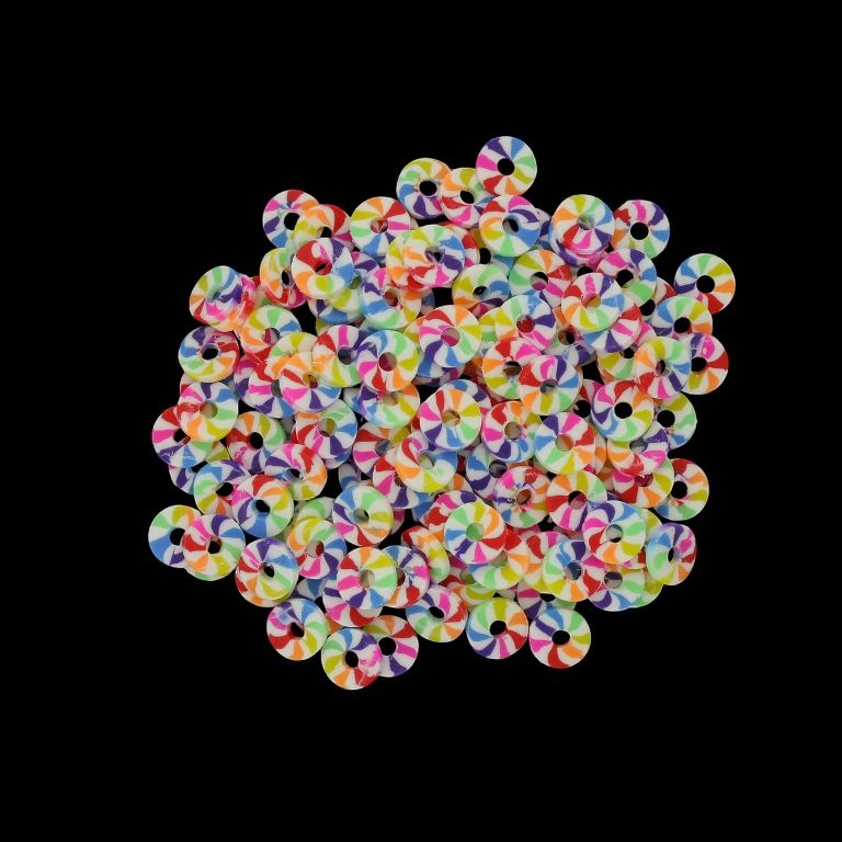 МЪНИСТА ОТ ПОЛИМЕРНА ГЛИНА ФИМО - ШАЙБА 01 - 6мм - МИКС ДЪГА 033 - 25 гр. (570 бр.) Отвор-2.0мм
