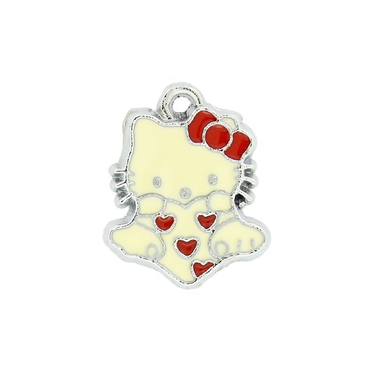 МЕТАЛНИ МЪНИСТА - ВИСУЛКА С ЕМАЙЛ - КИТИ 11 СЪРЦА - 17х20х1.5мм ЕКРЮ-ЧЕРВЕНО - ПАКЕТ 50 бр. Отвор-2.0мм