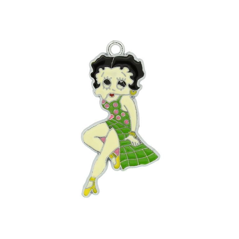 МЕТАЛНИ МЪНИСТА - ВИСУЛКА С ЕМАЙЛ - МОМИЧЕ С РОКЛЯ 03 - 24х45х1.8мм ЗЕЛЕНО - ПАКЕТ 50 бр. Отвор-2.5мм